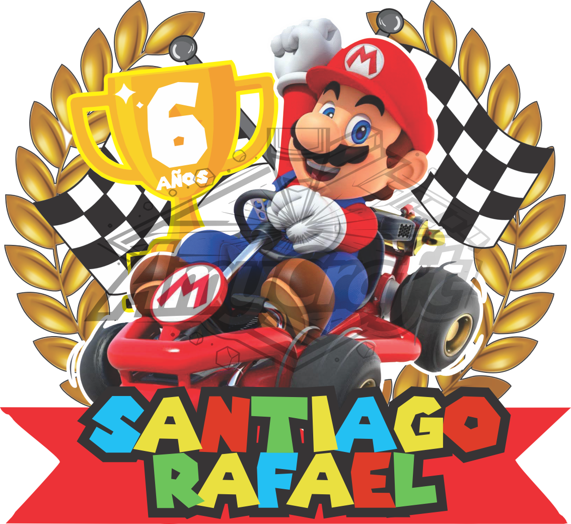 Diseño de servilletero con temática Mario Kart. Ideal para cortar en material de 3mm. Incluye vector e imagen (editable) para impresión. Más la fuente.