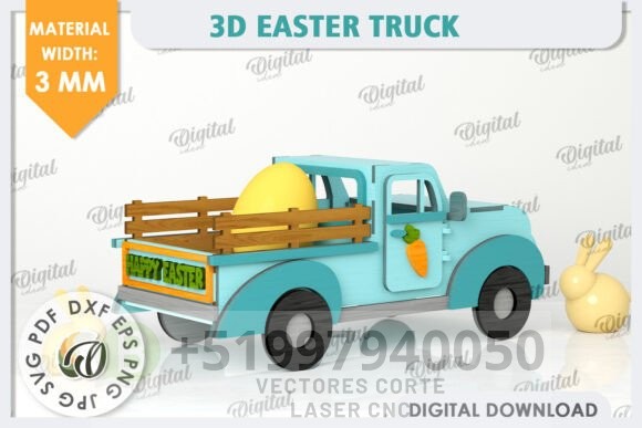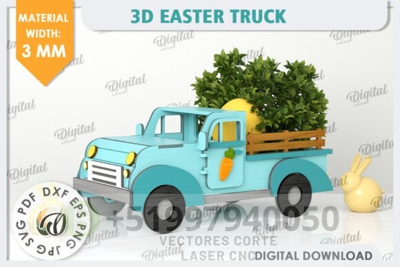 🚛 Camión de Pascua en 3D | Vector para Corte Láser 🐰🥕
