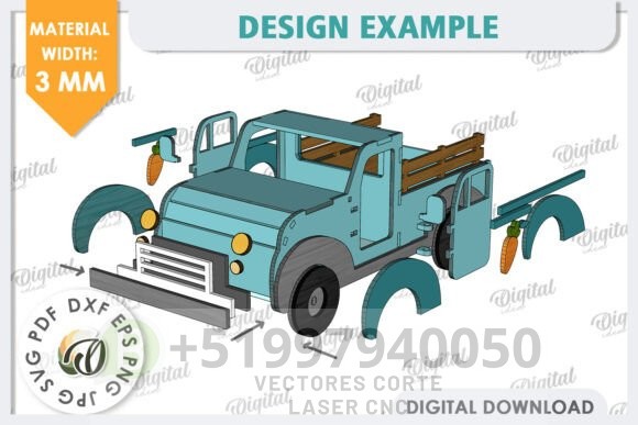 Dale un toque especial a la Pascua con este hermoso camión en 3D, ideal para decoración, manualidades y proyectos temáticos. Diseñado para corte láser en madera, MDF o acrílico de 3 mm, este modelo detallado es fácil de ensamblar y perfecto para personalizar con colores y detalles adicionales.