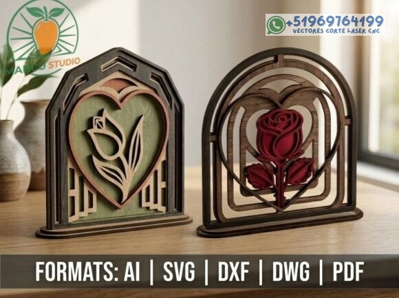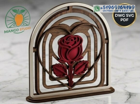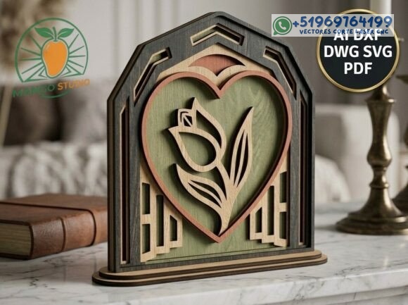 Adorno de Corazón Floral Multicapa en Madera – Diseño 3D Decorativo para Corte Láser