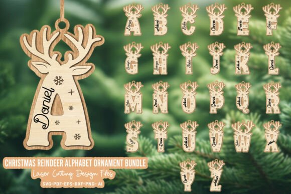 Adorno Navideño Alfabeto de Renos – Archivo Láser Personalizable (A–Z)