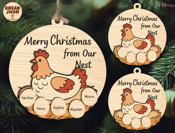 Sorprende esta Navidad con un detalle único: el adorno navideño familiar personalizado con diseño de gallina y huevos, perfecto para colocar los nombres de cada integrante de tu familia. Un recuerdo especial que combina ternura y originalidad para decorar tu árbol o regalar a tus seres queridos.
