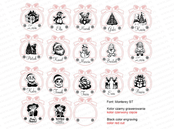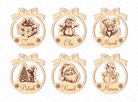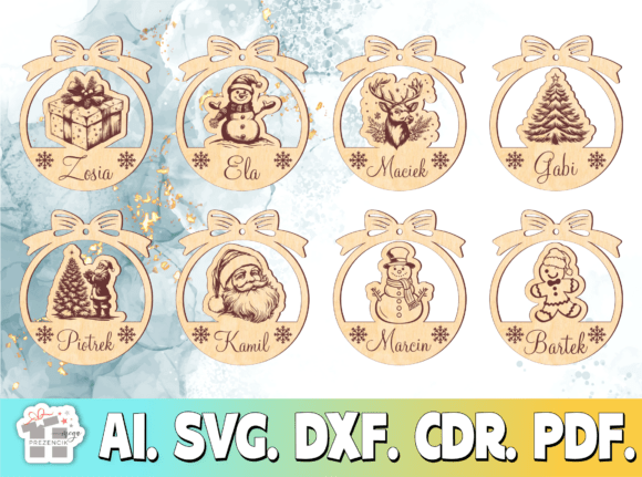 Decora tu árbol con estilo gracias a este set de adornos navideños personalizables, diseñados especialmente para corte láser. Cada pieza incluye una figura central —como renos, muñecos de nieve, Santa, árboles navideños o regalos— acompañada de un espacio para añadir un nombre personalizado, convirtiéndolos en el detalle perfecto para familias, amigos, eventos o ventas artesanales.