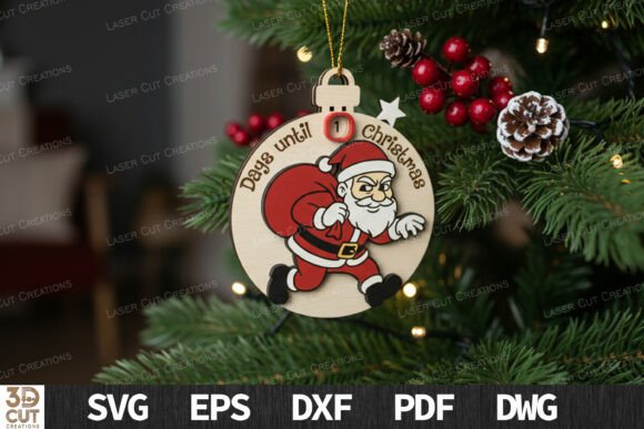 Celebra la magia de la temporada con este encantador paquete de adornos de cuenta regresiva para Navidad, diseñado para corte láser y perfecto para decorar tu árbol, regalar o vender durante las fiestas.
