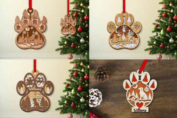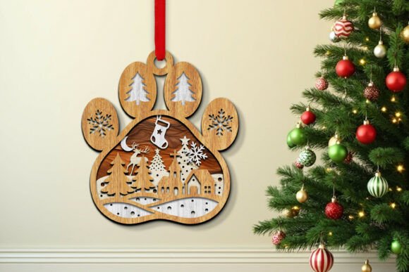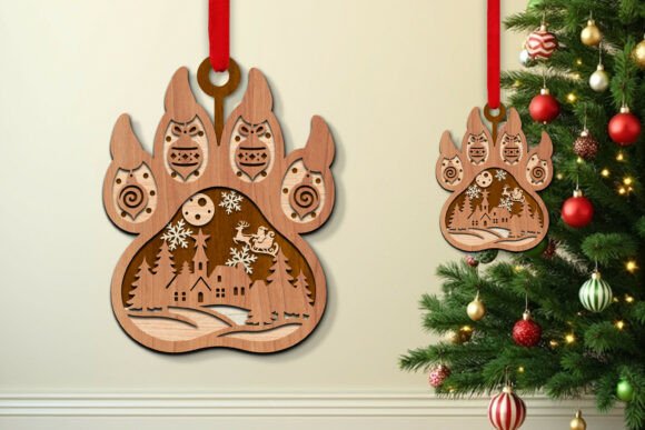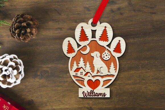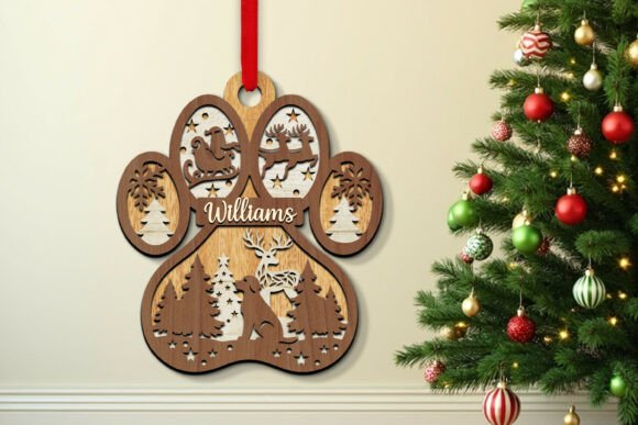 Haz que esta Navidad sea aún más especial con estos adorables adornos en forma de huella de perro, un detalle tierno y original para amantes de los animales y el corte láser.