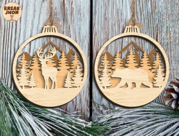 Decora tu árbol con un estilo natural y encantador gracias a este paquete de adornos navideños de animales del bosque. Cada diseño combina la calidez de la madera con siluetas de ciervos, osos, lobos y otros animales, rodeados de montañas y pinos, evocando la magia de la naturaleza en Navidad.