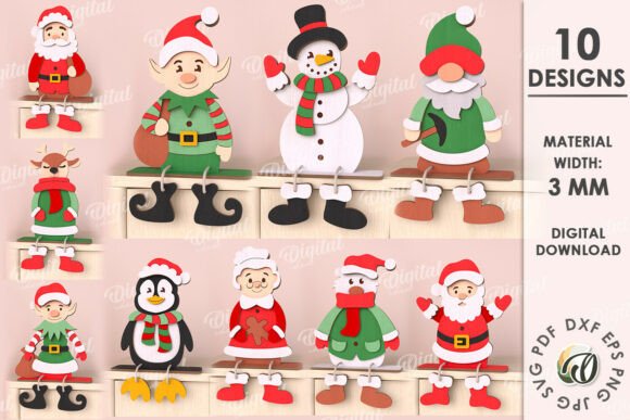 Lleva el espíritu navideño a otro nivel con este encantador paquete de personajes navideños en 3D. Diseñados especialmente para corte láser, estos adorables adornos con piernas colgantes darán vida a repisas, estanterías o vitrinas con un toque único y divertido.