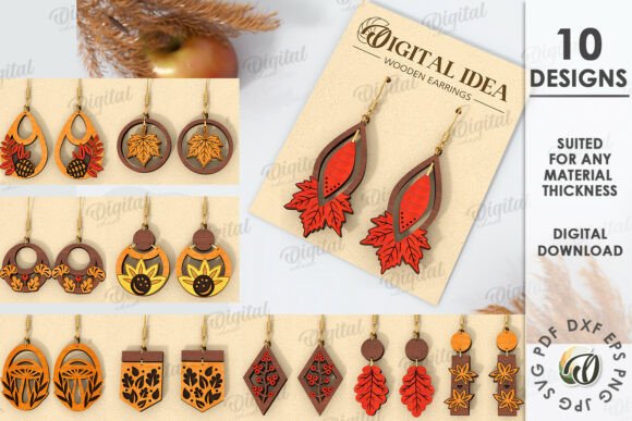Inspírate con la belleza de la temporada y crea accesorios únicos con este paquete de 10 diseños de aretes otoñales, perfectos para corte láser. Cada diseño captura la esencia del otoño con formas de hojas, flores, patrones geométricos y una estética cálida ideal para madera o acrílico.