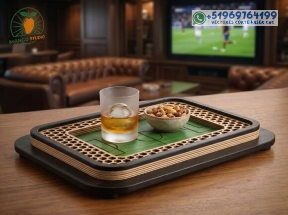 Esta bandeja de fútbol multicapa 3D está diseñada para los verdaderos fanáticos que quieren llevar su pasión más allá del estadio. Una pieza elegante, funcional y temática perfecta para servir bebidas, decorar espacios deportivos o sorprender con un regalo original.