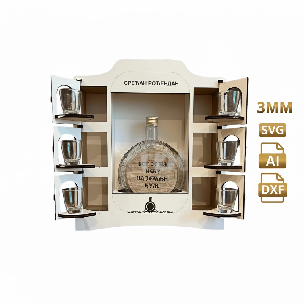 Sorprende con un diseño elegante y funcional: esta Barra Mini Portátil para botellas y vasos es perfecta para quienes buscan un regalo original o una pieza decorativa práctica. Su estructura precisa y moderna está diseñada para corte láser, permitiendo un ensamblaje limpio y profesional con materiales de 3 mm.