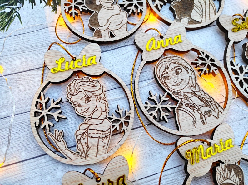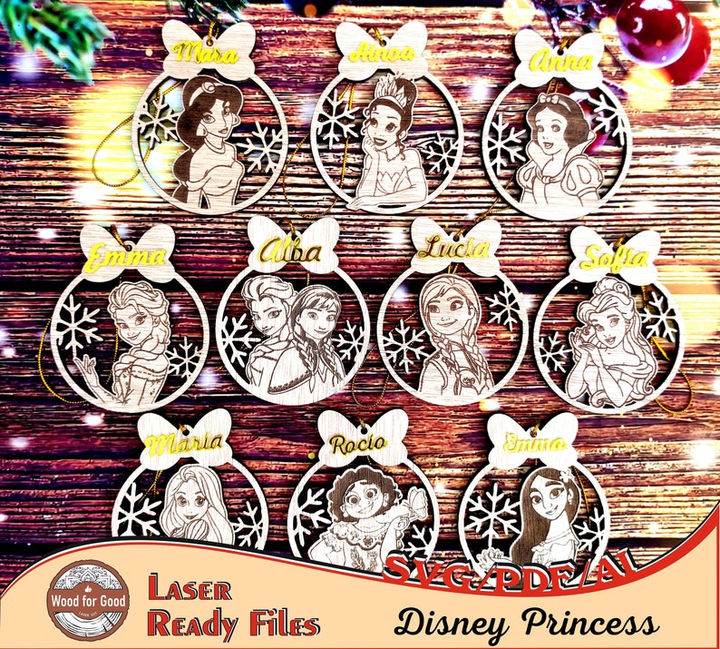 Celebra la magia de la Navidad con este encantador set de bolas navideñas con princesas Disney, listas para cortar y grabar en madera. Cada diseño captura el encanto y la elegancia de tus personajes favoritos, convirtiéndose en el adorno perfecto para árboles navideños, regalos personalizados o proyectos de decoración infantil.