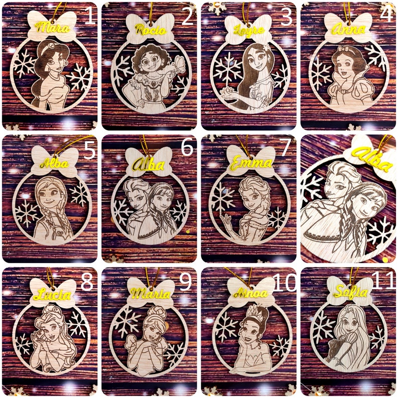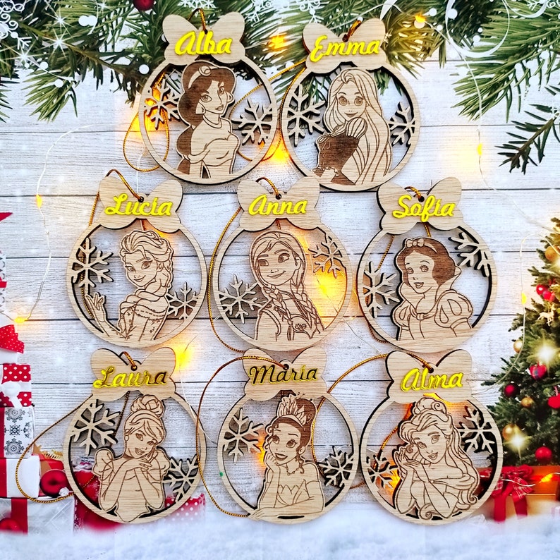 Bolas Navideñas con Princesas Disney para Corte Láser