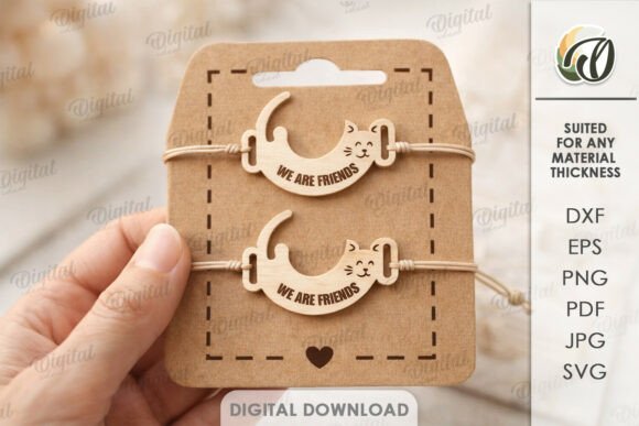 Este diseño permite transformar una simple tarjeta en un pequeño escenario donde cada pulsera brilla con personalidad, combinando la precisión del corte láser con la elegancia de la presentación artesanal.