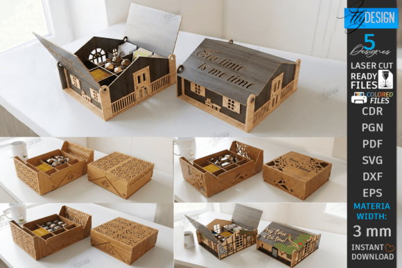 El diseño interior permite separar sobres de té, infusiones, chocolates o pequeños accesorios, mientras que la tapa grabada —con frases delicadas y patrones geométricos o florales— convierte la pieza en un objeto ideal para regalar o vender como producto terminado.