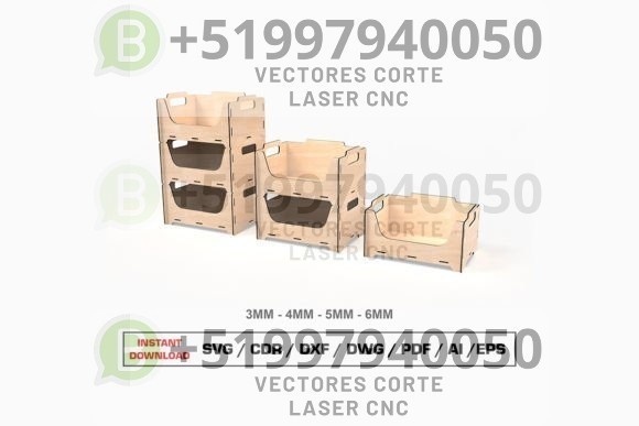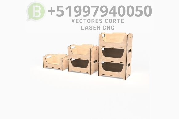 Optimiza el espacio de tu taller o negocio con este diseño de cajas apilables para corte láser, creadas para ofrecer organización, resistencia y un acabado profesional. Su estructura encajable permite un montaje rápido sin necesidad de clavos ni tornillos, ideal para proyectos prácticos y funcionales.