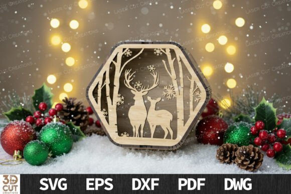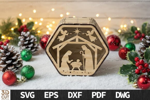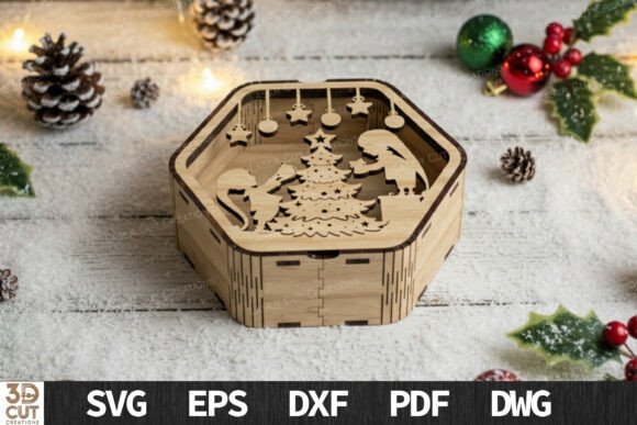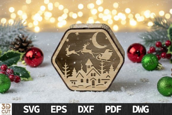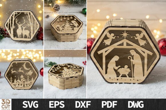 Descubre la magia de la Navidad con este paquete de cajas hexagonales 3D, perfectas para regalar o decorar en esta temporada. Cada diseño incluye un detalle único: desde el pesebre y los renos, hasta paisajes nevados y árboles navideños, todos cuidadosamente elaborados para corte láser de alta precisión.