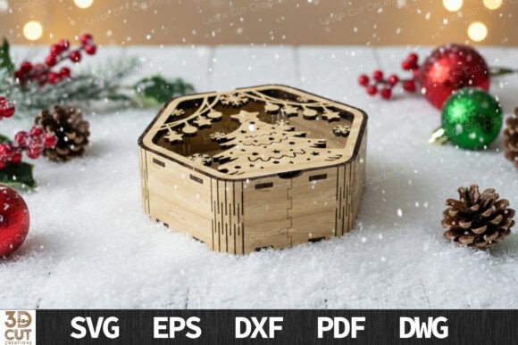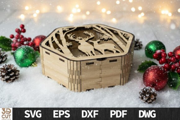 Añade un toque artesanal y elegante a tus creaciones con estas cajas hexagonales navideñas, el complemento perfecto para sorprender en tus proyectos de corte láser esta Navidad.