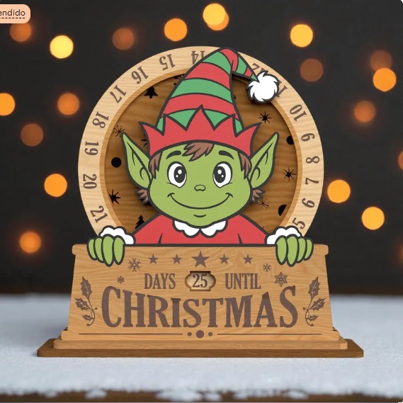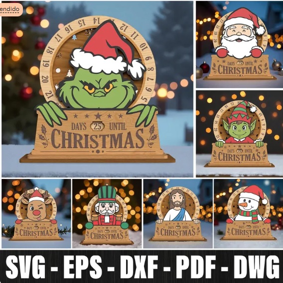 Un diseño perfecto para quienes aman crear piezas navideñas con personalidad. Este calendario de cuenta regresiva para Navidad incluye varios personajes (Grinch, Santa, duendes, cascanueces y más), ideal para ventas artesanales, decoración del hogar y productos personalizados para tus clientes.