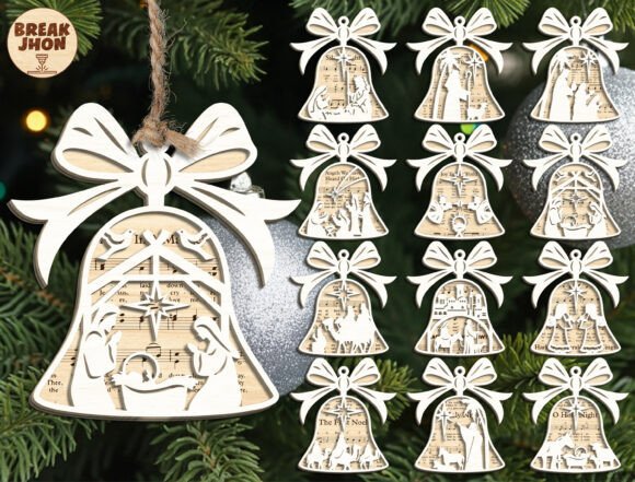Celebra el verdadero espíritu de la Navidad con este hermoso pack de Campanas Colgantes con Escenas Bíblicas Navideñas, diseñado especialmente para corte láser. Cada una de las 12 campanas representa una escena sagrada —desde el pesebre hasta los ángeles y pastores—, creando una colección única que combina arte, fe y elegancia.