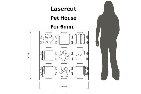 Convierte tu taller en el lugar perfecto para consentir a tus mascotas con esta casa de mascotas en MDF diseñada para corte láser. Su estructura modular, pensada para material de 6 mm, ofrece un diseño práctico, resistente y atractivo gracias a sus acabados con huellas decorativas.