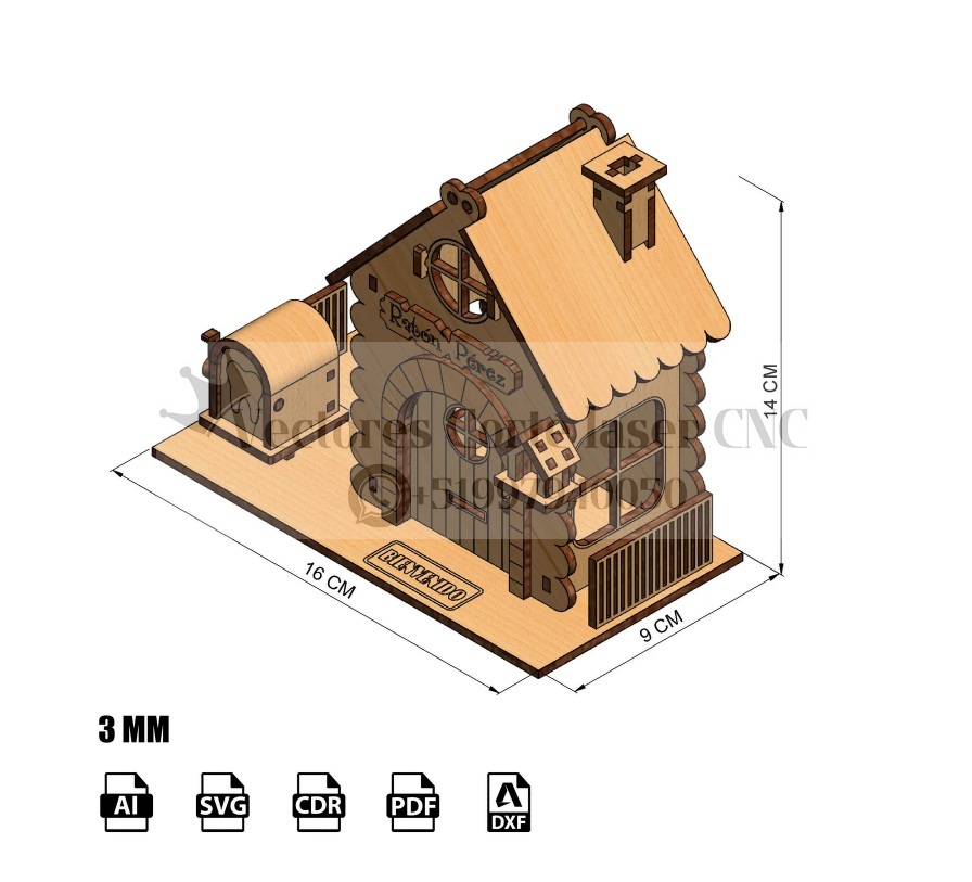 Casa del Ratón Pérez en MDF – Vector para corte láser