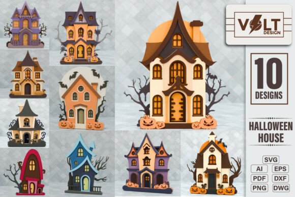 Crea decoraciones espeluznantes con este paquete exclusivo de casas embrujadas de Halloween, diseñadas para corte láser. Este set incluye 10 modelos únicos de casas de terror, perfectas para ambientar fiestas, hacer adornos o vender como productos temáticos de temporada.