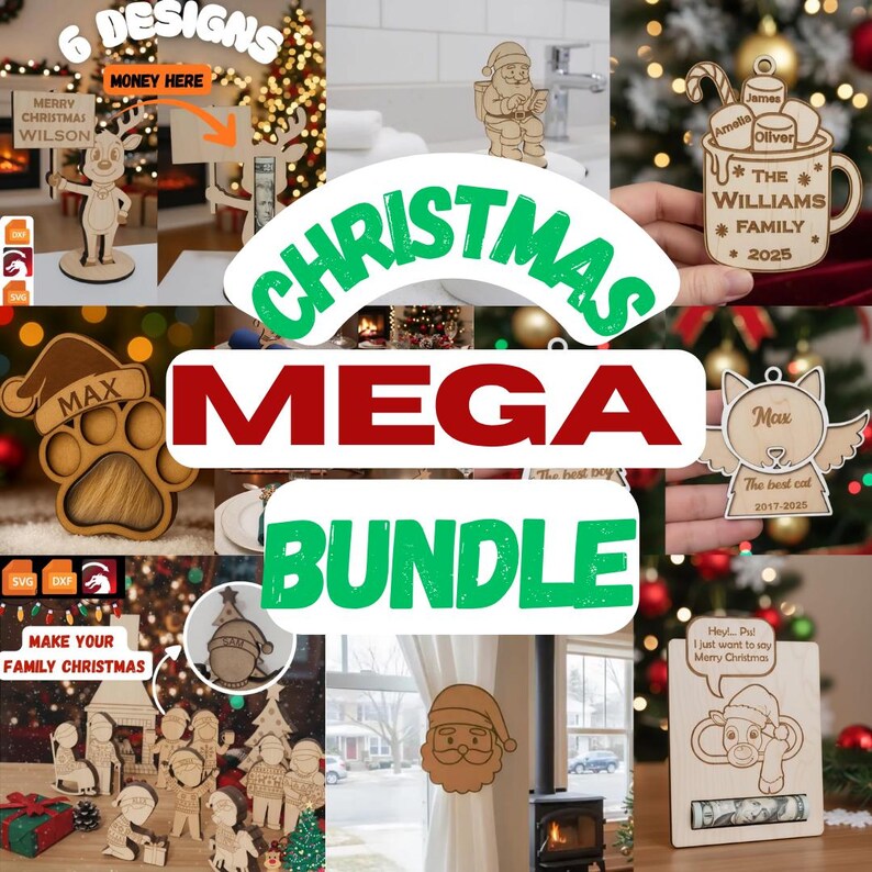 Presentamos el Christmas Mega Bundle, una colección premium pensada para artesanos, emprendedores y creadores que desean ofrecer piezas navideñas originales, personalizadas y listas para cortar en láser.