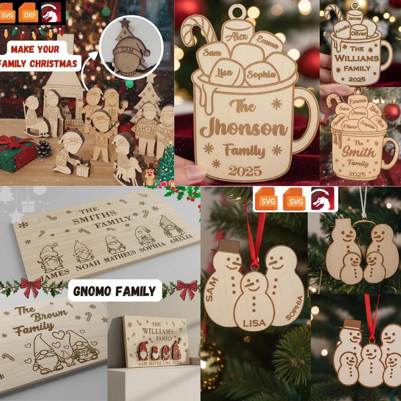 Perfectos para productos navideños personalizados, regalos familiares o ventas por temporada.