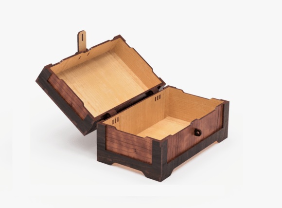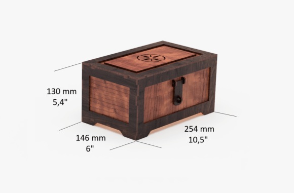 Transforma tus proyectos con este cofre estilo pirata, una pieza artesanal que combina precisión, funcionalidad y el encanto clásico de los tesoros antiguos.