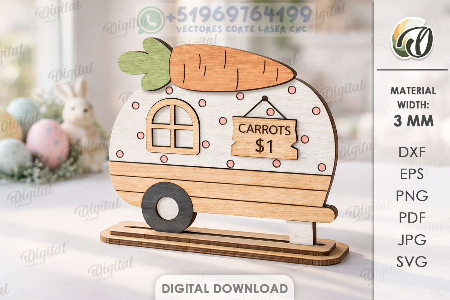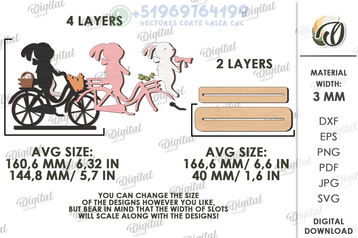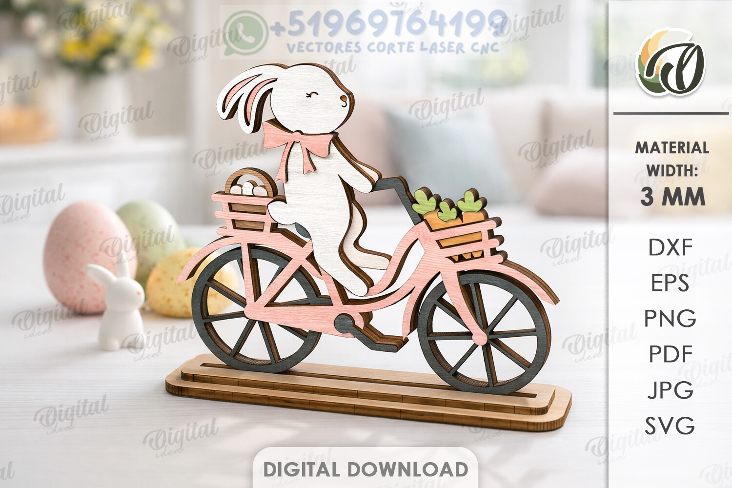 soportes de Pascua MDF 3mm, decoración Easter corte láser, conejos 3D SVG, archivos DXF Pascua para LightBurn, decoraciones primaverales en madera, figuras autoportantes láser.