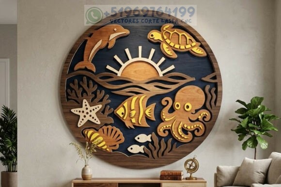 Los océanos esconden historias, criaturas y paisajes fascinantes. Con este diseño podrás convertir una simple pieza de madera en un portal visual hacia la vida marina, combinando tecnología láser con arte inspirado en la naturaleza.