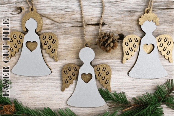 Añade un toque celestial a tu decoración con este Conjunto de Adornos de Ángeles, especialmente diseñado para corte láser en madera o MDF. Cada figura presenta un estilo elegante y minimalista, con alas grabadas y un corazón recortado en el centro que simboliza paz y amor en esta temporada navideña.