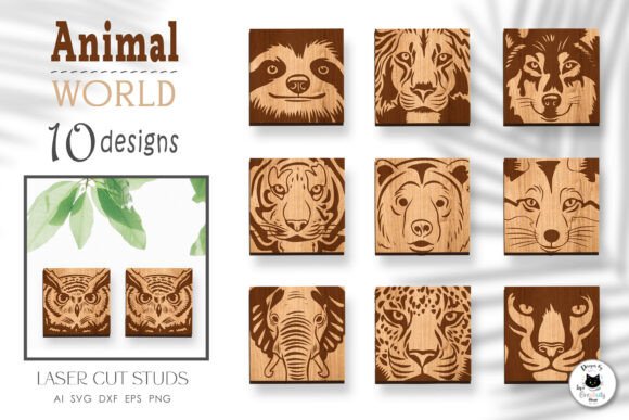 La fuerza de la naturaleza puede capturarse en cada línea grabada. Este set Animal World reúne una colección de rostros de animales en formato cuadrado, diseñados especialmente para proyectos de corte y grabado láser en madera o MDF.