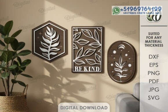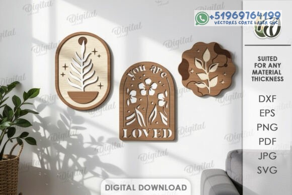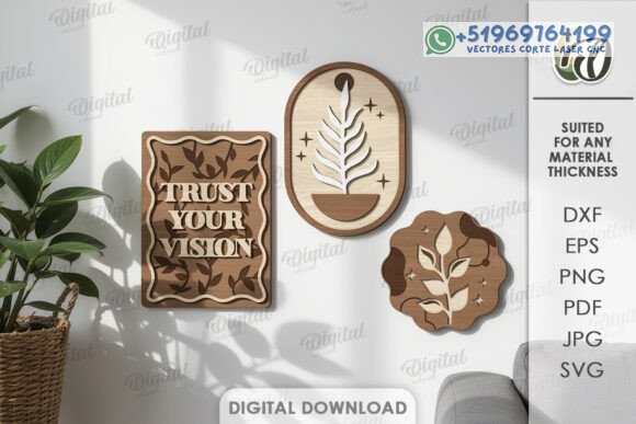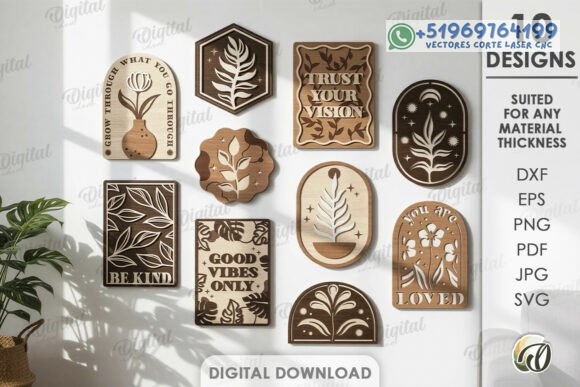 Este pack de cuadros decorativos estilo boho en capas convierte la madera en arte contemporáneo, combinando formas orgánicas, frases inspiradoras y composiciones equilibradas que aportan armonía visual a cualquier ambiente.