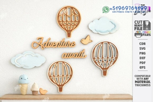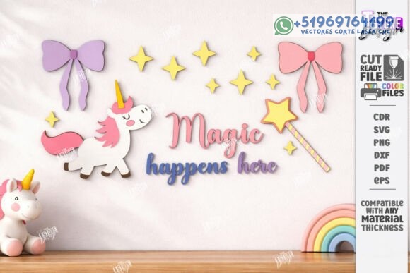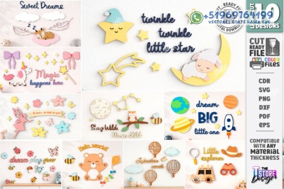 Decoración de Pared para Habitación Infantil en Madera – Pack Creativo para Corte Láser