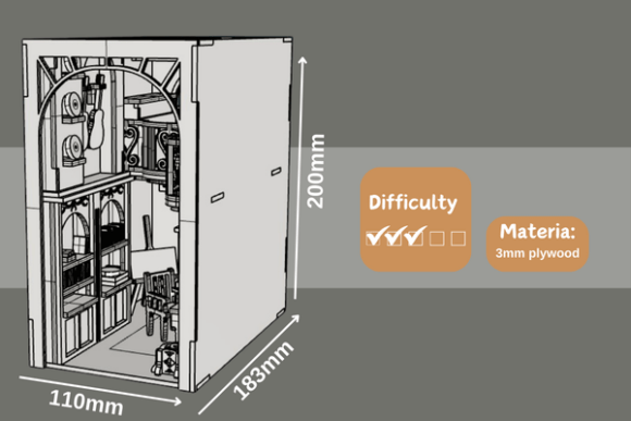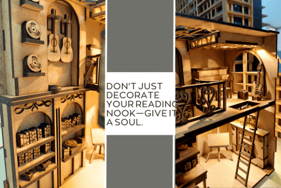 Dale un toque artístico a tus libros con esta escena de rincón de lectura Book Nook para corte láser y convierte cualquier estante en un portal a otra historia.