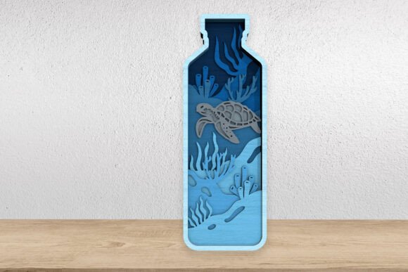 Sumérgete en la belleza del océano con este diseño de tortuga marina dentro de una botella, una pieza artística creada para corte láser multicapa. Su estructura detallada y tridimensional evoca el movimiento del mar y la serenidad de la vida marina, ideal para proyectos decorativos y regalos personalizados.