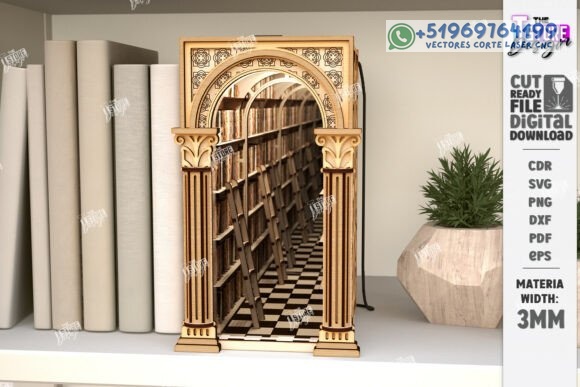 Este diseño de espejo infinito estilo biblioteca en miniatura crea una ilusión visual fascinante: un pasadizo interminable de estanterías que parece perderse en el tiempo. Una pieza decorativa única que mezcla arte, perspectiva y fantasía.