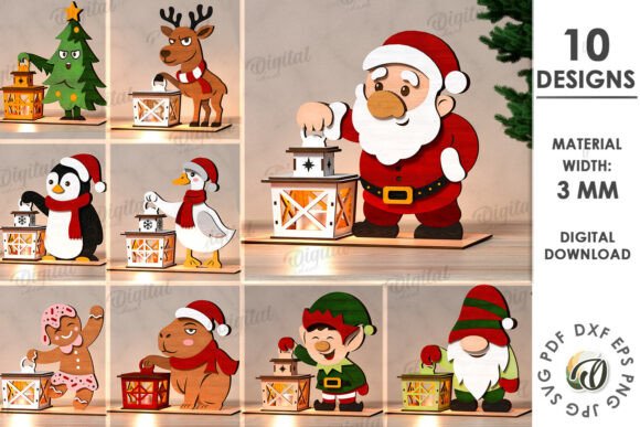 Ilumina tus celebraciones con este pack de faroles navideños para corte láser, un set de 10 diseños únicos con personajes festivos como Papá Noel, renos, pingüinos, duendes y más. Cada pieza está pensada para cortar en madera de 3 mm y ensamblarse fácilmente, creando decoraciones luminosas ideales para tu hogar, negocio o regalos personalizados.
