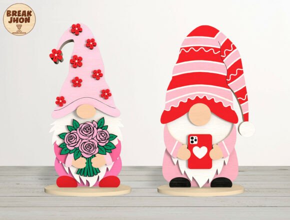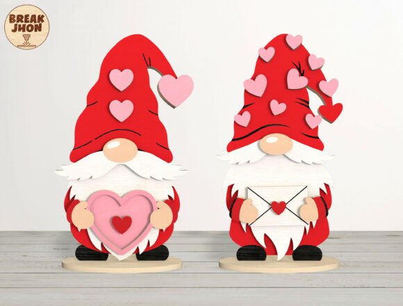 Las formas están cuidadosamente equilibradas para mantenerse de pie sobre base, con capas superpuestas que aportan volumen real y un acabado visual muy atractivo. Los mensajes y símbolos de amor se integran directamente en la silueta, evitando elementos genéricos y dando a cada gnomo una identidad propia.