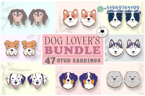 Para quienes saben que los perros no son solo mascotas… sino parte de la familia. Este Dog Lover’s Bundle reúne 47 diseños de aretes tipo stud inspirados en diferentes razas de perros, ideales para crear accesorios únicos para amantes de los animales.