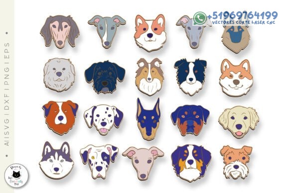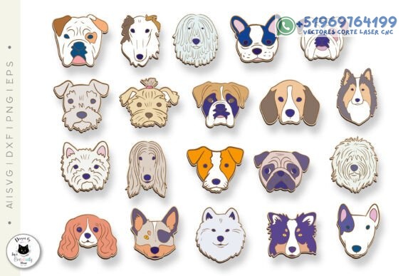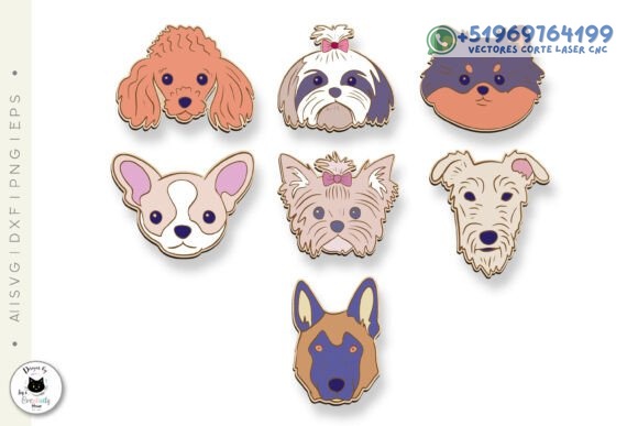 Cada diseño representa rostros estilizados de distintas razas caninas, con líneas suaves y expresiones adorables que resaltan la personalidad de cada perro. Estos pendientes son perfectos para fabricarse en madera, acrílico o MDF, convirtiéndose en accesorios ligeros, modernos y muy atractivos para vender en tiendas de joyería artesanal.