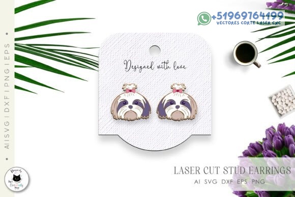 Archivos en SVG, DXF, AI, EPS y PDF, compatibles con LightBurn, CorelDRAW, Illustrator y máquinas CNC de corte láser. Perfecto para crear aretes para amantes de los perros, joyería temática de mascotas, pendientes artesanales personalizados y accesorios handmade para venta.