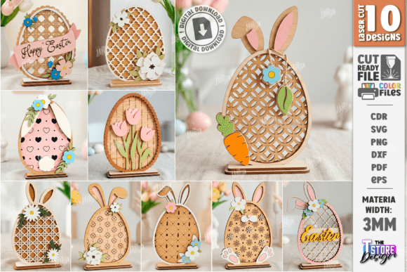 Este pack de huevos decorativos de Pascua transforma la madera en primavera pura. Diseños verticales con orejitas de conejo, flores, zanahorias y patrones calados, pensados para destacar en vitrinas, mesas, repisas y ventas estacionales. Son piezas que se venden por emoción: suaves, alegres y visualmente irresistibles.