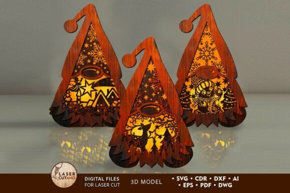Incluye 3 diseños tridimensionales de faroles navideños de gnomo.