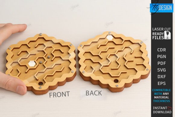 Este pack de laberintos de madera 3D es una joya para creadores que buscan proyectos interactivos, ingeniosos y listos para cortar. Incluye 10 diseños diferentes, todos pensados para que puedas crear laberintos de doble cara con bolillas metálicas, ideales como juegos de bolsillo, regalos artesanales o productos para venta.