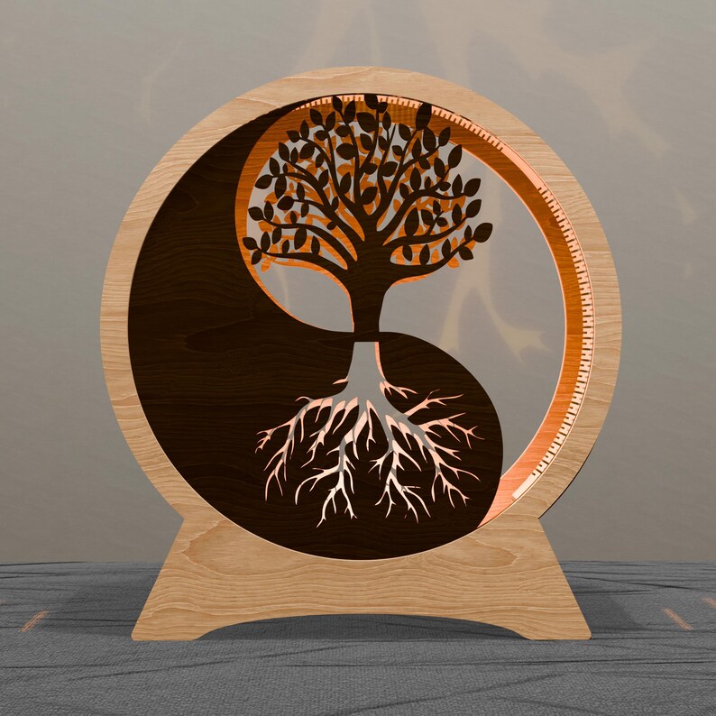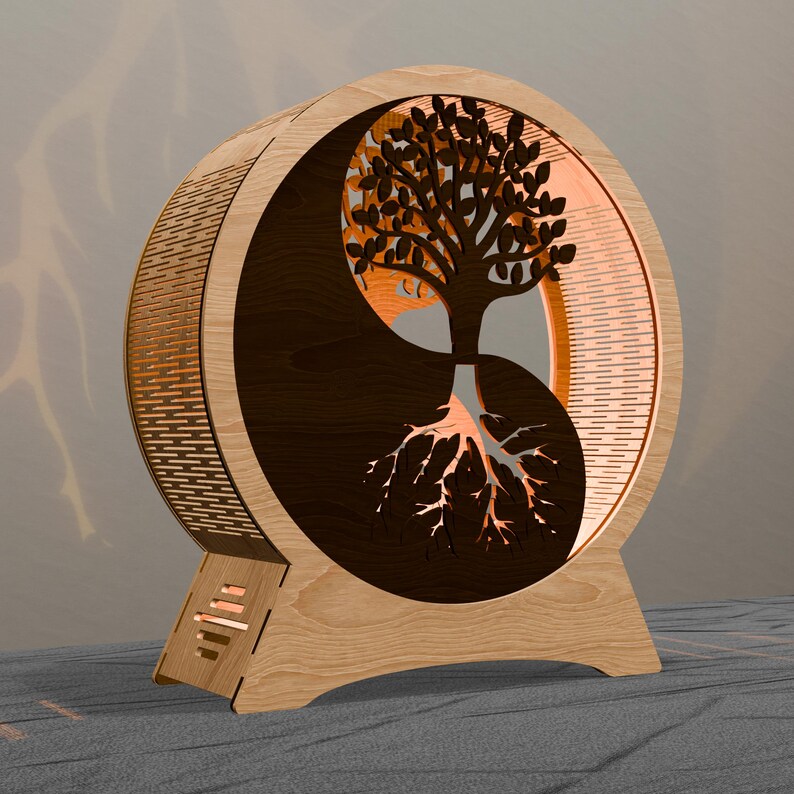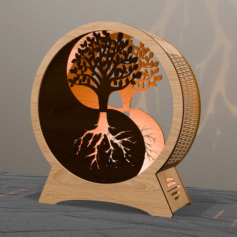 Eleva tus proyectos de corte láser con este diseño de la Lámpara Yin Yang del Árbol de la Vida, una pieza perfecta para crear iluminación decorativa con un significado profundo. Su composición equilibrada entre luz y sombra, raíces y copa, la convierte en un proyecto ideal para regalar, vender o añadir a tu propio catálogo artesanal.