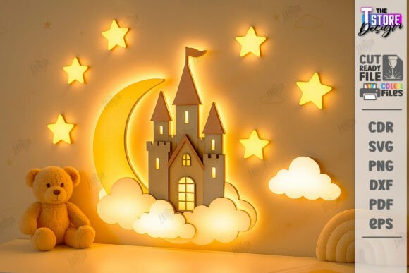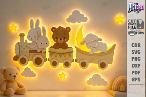Llega a tu taller una colección mágica para transformar cualquier habitación infantil. Este paquete de decoración de pared luminosa, listo para corte láser, combina ilustraciones tiernas con un sistema de capas que permite agregar luces LED para crear ambientes cálidos y llenos de fantasía.