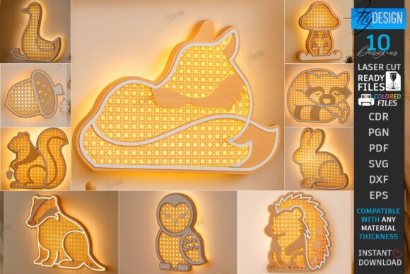 🌙 Pack de Luces Nocturnas Infantiles en Madera – 10 Diseños para Corte Láser con LED