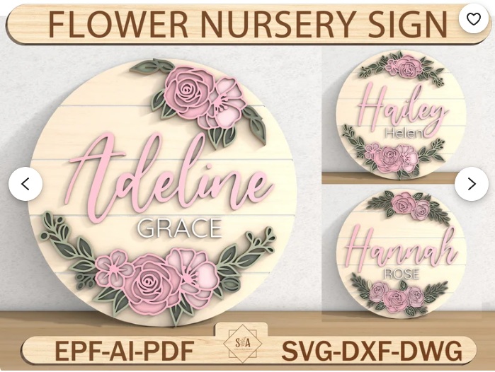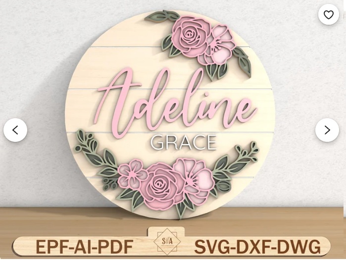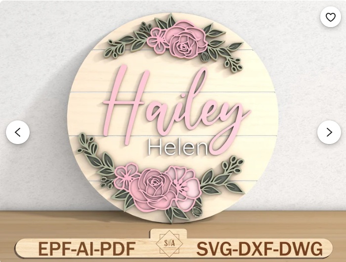 Este hermoso vector multilayer de letrero floral con nombre personalizado es ideal para decorar habitaciones de bebés, niñas o espacios delicados con un toque artesanal. Su diseño redondo en capas incluye flores estilizadas, tipografía manuscrita y detalles decorativos que lo hacen perfecto para regalos de nacimiento, bautizos o decoración de interiores.